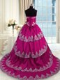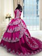 Glorious Taffeta Sweetheart Sleeveless Court Train Lace Up Beading and Appliques and Embroidery and Ruffled Layers Quinceanera Gown in Fuchsia