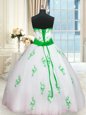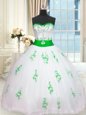 Glorious Tulle Sleeveless Floor Length Sweet 16 Quinceanera Dress and Appliques and Belt