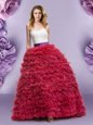 Home >  Quinceanera Dresses >  Luxurious Quinceanera Dresses > Glorious Wine Red Sleeveless Floor Length Lace and Ruffled Layers Lace Up Quinceanera Dresses
