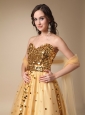 Home >  Prom Dresses >  Best Prom Dresses > Gold A-line Sweetheart Floor-length Sequins Taffeta and Tulle Prom Dress