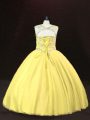 Gold Ball Gowns Tulle Scoop Sleeveless Beading Floor Length Lace Up Sweet 16 Quinceanera Dress