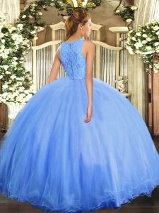Gold Ball Gowns Tulle Scoop Sleeveless Lace Floor Length Clasp Handle Quinceanera Gowns