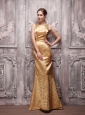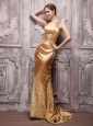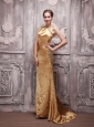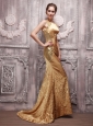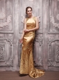 Gold Column Bateau Brush Train Sequin Beading Prom / Evening Dress