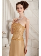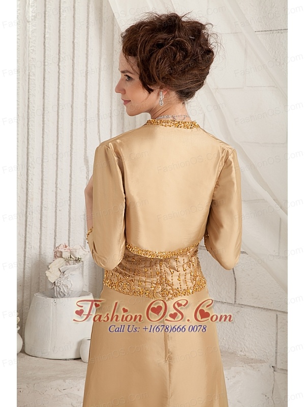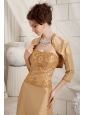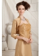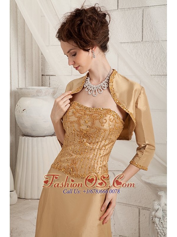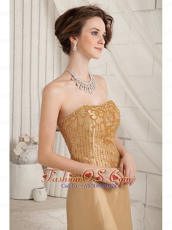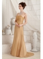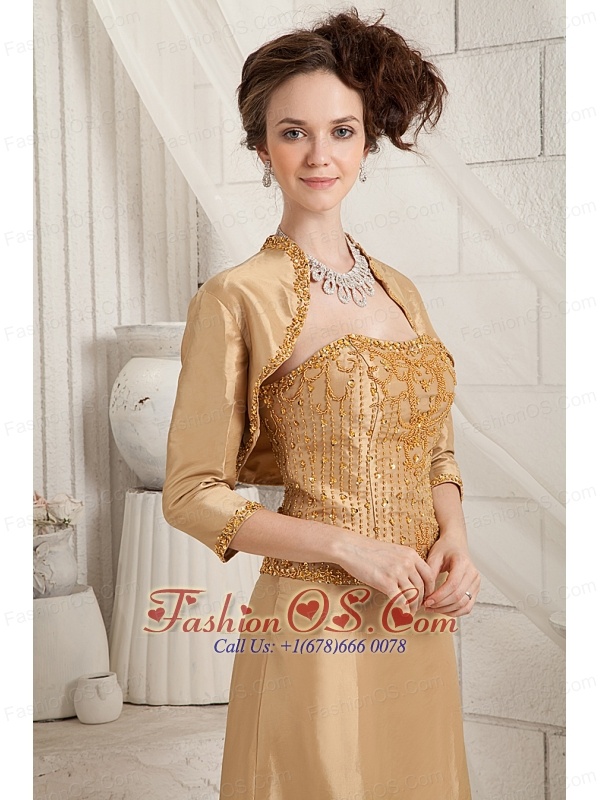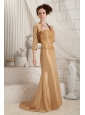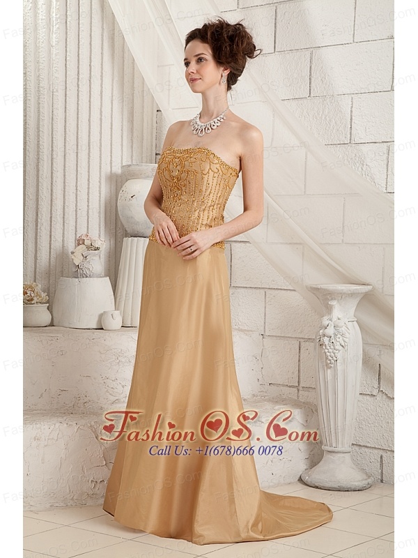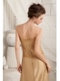 Gold Customize Mother Of The Bride Dress Column One Shoulder Satin Beading Brush Train
