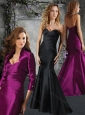 One who loves elegance will fall in love with this gorgeous dress. It has a slight sweetheart neckline. Glimmering beading scatters intricately on the corset bodice, creating a fabulous look of the dress, the taffeta skirt flows naturally which continues to the back to create a chapel train. Just like floating in the air when one moves. A matching jacket is employed to give an elegant look.