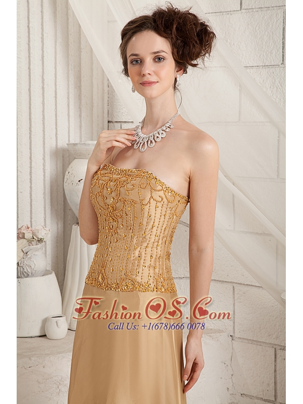 Home >  Special Occasion Dresses >  Mother of the Bride Dresses > Gold Customize Mother Of The Bride Dress Column One Shoulder Satin Beading Brush Train