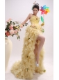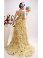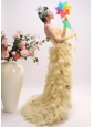 Gold High-low and Straps For 2013 Prom Dress With Ruched Bodice