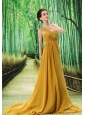 Home >  Prom Dresses >  Popular Prom Dresses > Gold One Shoulder Prom Dress Appliques and Ruch In Graduation