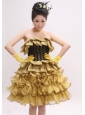 Gold Ruffled Layers A-line / Princess Mini-length For Custom Made Prom Dress