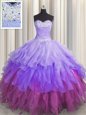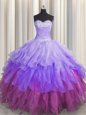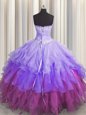 Gold Sleeveless Beading and Ruffles Floor Length Quinceanera Dress