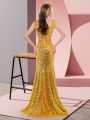 Home >  Prom Dresses >  Cheap Prom Dresses > Gold Sleeveless Sequined Sweep Train Lace Up Dress for Prom for Prom and Party and Military Ball