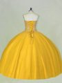 Gold Sleeveless Tulle Lace Up Quinceanera Gowns for Sweet 16 and Quinceanera