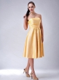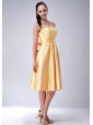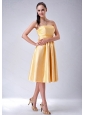 Home >  Special Occasion Dresses >  Dama Dresses for Quinceanera > Gold Strapless Satin Bow Dama Dresses for Quinceanera