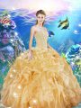 Gold Sweetheart Lace Up Beading and Ruffles Sweet 16 Dresses Sleeveless