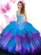 Gold Sweetheart Lace Up Beading and Ruffles Vestidos de Quinceanera Sleeveless