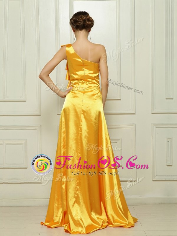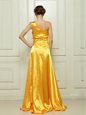 Home >  Prom Dresses >  Prom Dresses On Sale > Gold Taffeta Zipper One Shoulder Sleeveless With Train Prom Evening Gown Brush Train Ruffles