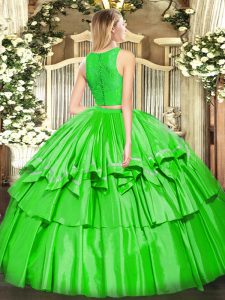 Gold Zipper Quinceanera Gowns Ruffled Layers Sleeveless Floor Length