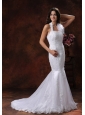 Home >  Wedding Dresses >  Lace Wedding Dresses > Goodyear Arizona Customize Wedding Dress Clearance With Halter Neckline Lace Over Decorate Shirt
