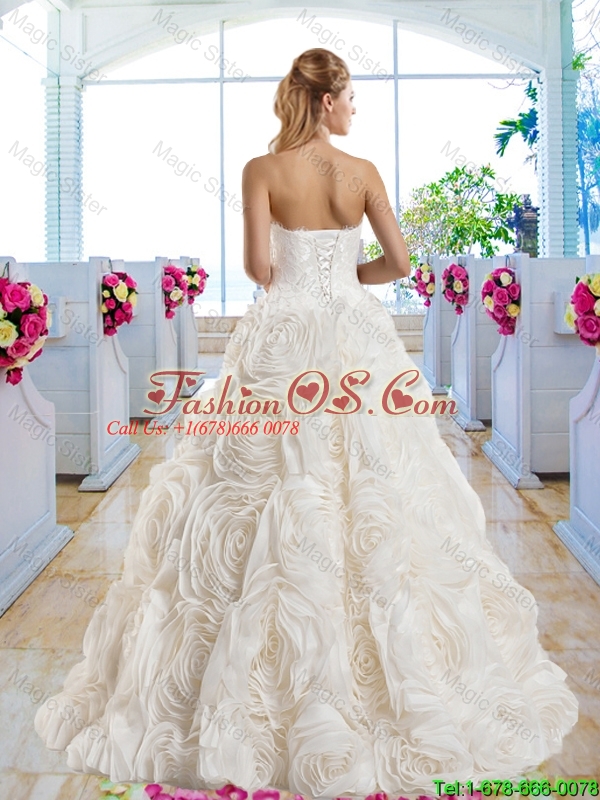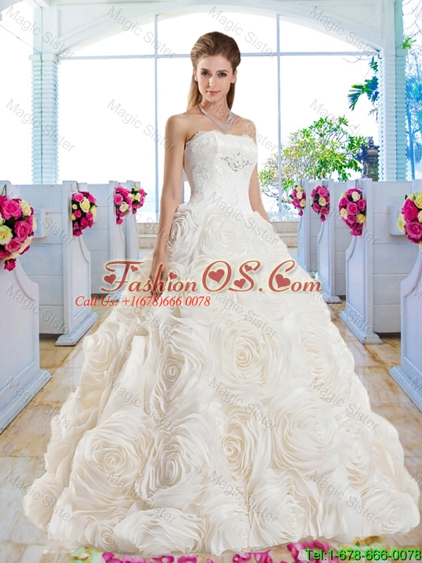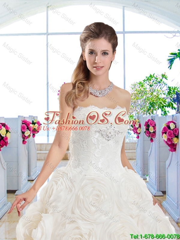 Gorgeous A Line Strapless Brush Train Bridal Dresses with Lace