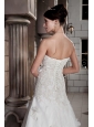 The romantic wedding dress with lace details is extramely wonderful. The dress has a special charm that cannot be duplicated with other design accents. This one features a beautiful lace overlay. The floral applique on the upper waist adds great elegance. The A-line features a gorgeous lace overlay as well that extends into a lovely cathedral-length train in the back. It really creates a lovely silhouette. A corset-style closure secures the dress in place and completes the design.