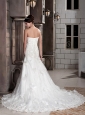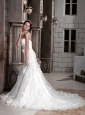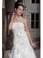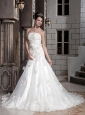 Gorgeous A-line / Princess Strapless Court Train Tulle and Satin Appliques Wedding Dress