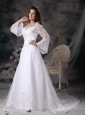Gorgeous A-line Square Wedding Dress Organza Appliques Court Train