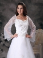 This white wedding dress will make your weding the unique and leave a longlasting wonderful memory. The fitted bodice is adorned with a sweetheart neckline and exquisite appliques. The see-through sleeves add romantic flair. Layers of tulle material with stunning appliques defines the floor-length skirt to create a beautiful curve. A zipper up back completes this fabulous dress. What are you looking for? Bring it to your home with no hesitation!
