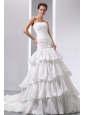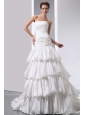 Home >  Wedding Dresses >  Low Cost Wedding Dresses > Gorgeous A-line Strapless Low Cost Wedding Dress Court Train Taffeta Hand Made Flower and Ruch