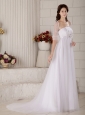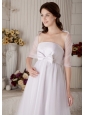 Gorgeous A-line Strapless Maternity Wedding Dress Brush Train Tulle Bow