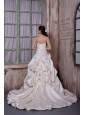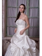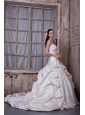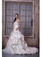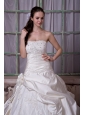 Home >  Wedding Dresses >  Ball Gown Wedding Dresses > Gorgeous A-line Strapless Wedding Dress Taffeta and Lace Appliques and Hand Made Flower Chapel Train