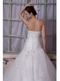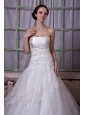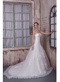 Gorgeous A-line Strapless Wedding Dress Taffeta and Lace Appliques Chapel Train