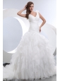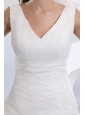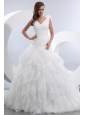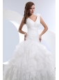 Home >  Wedding Dresses >  Beautiful Wedding Dresses > Gorgeous A-line V-neck Ruffles and Ruch Wedding Dress Brush Train Taffeta and Organza