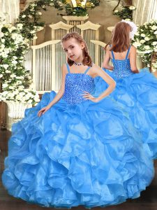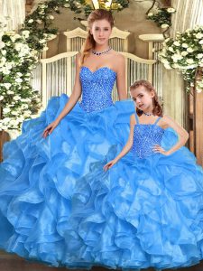 Gorgeous Baby Blue Ball Gowns Sweetheart Sleeveless Organza Floor Length Lace Up Beading and Ruffles 15th Birthday Dress