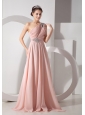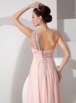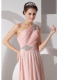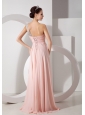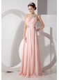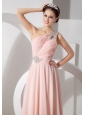 Home >  Prom Dresses >  Beautiful Prom Dresses > Gorgeous Baby Pink Empire One Shoulder Prom Dress Chiffon Ruch and Beading Brush Train