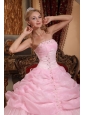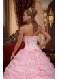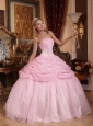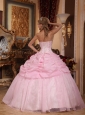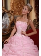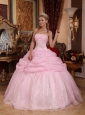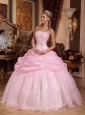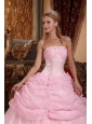 Gorgeous Baby Pink Quinceanera Dress Strapless Organza Appliques Ball Gown