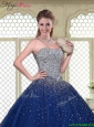 Gorgeous Ball Gown Strapless Quinceanera Gowns in Navy Blue