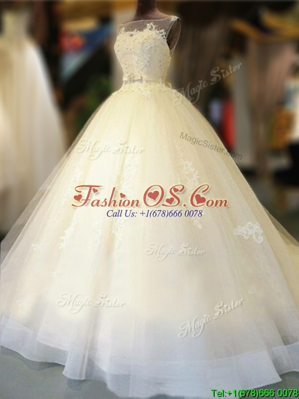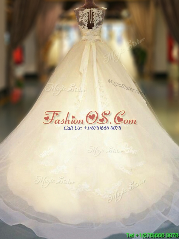 Gorgeous Bateau Open Back Bowknot Wedding Dress with Court Train