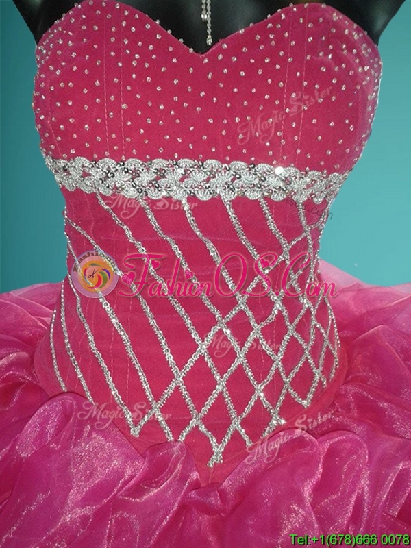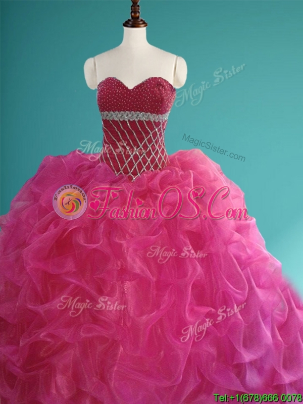 Gorgeous Beaded and Pick Ups Organza Sweet 16 Dress in Fuchsia
