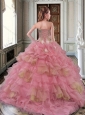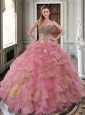 Home >  Quinceanera Dresses >  Popular Quinceanera Dresses > Gorgeous Beaded and Ruffled Big Puffy Quinceanera Dress in Watermelon Red and Gold