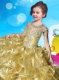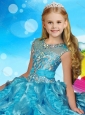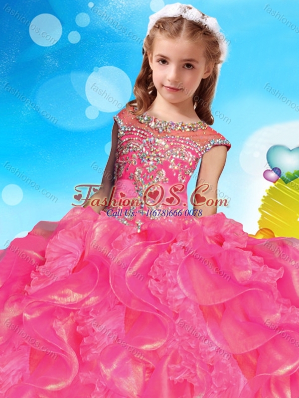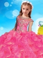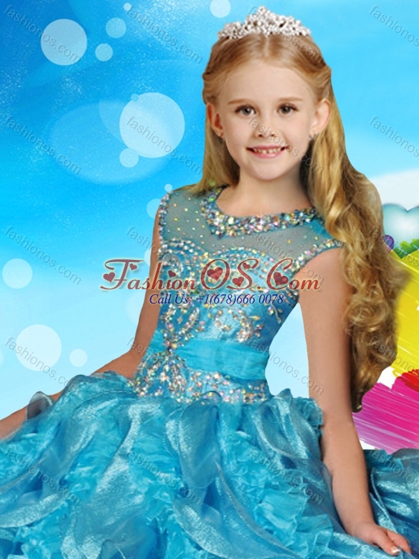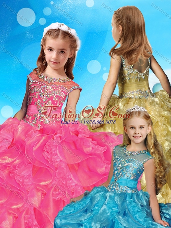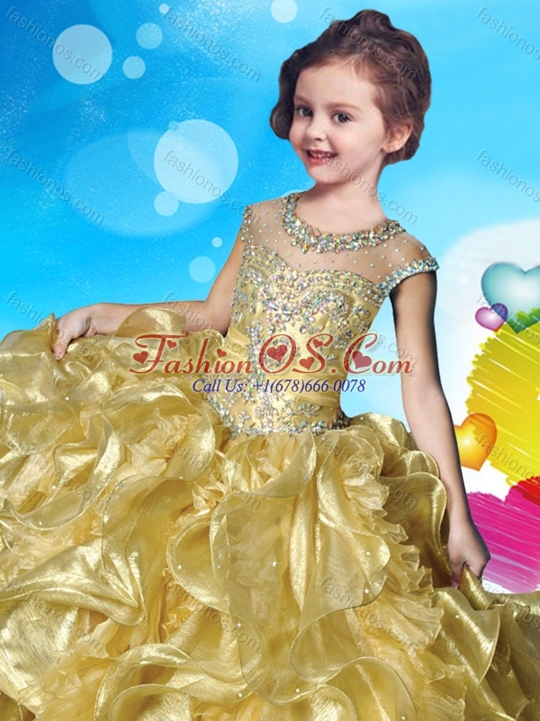 Gorgeous Beaded and Ruffled Little Girl Pageant Dress with See Through Scoop