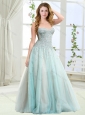 Home >  Evening Dresses > Gorgeous Beaded Brush Train Tulle Evening Dress with Zipper Up