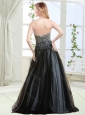 Gorgeous Beaded Brush Train Tulle Evening Dress with Zipper Up