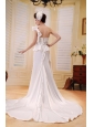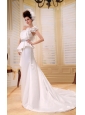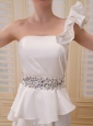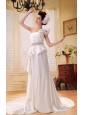 Gorgeous Beaded Decorate Waist One Shoulder Wedding Dress With Chapel Train Clasp Handle