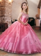Gorgeous Beaded Rose Pink Princesita Quinceanera Dresses in Organza