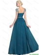 Gorgeous Beaded Teal Cap Sleeves Prom Dresses with Straps