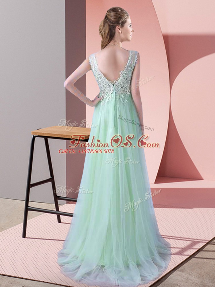 Home >  Special Occasion Dresses >  Discount Dama Dresses > Gorgeous Beading and Lace Dama Dress Apple Green Zipper Sleeveless Brush Train