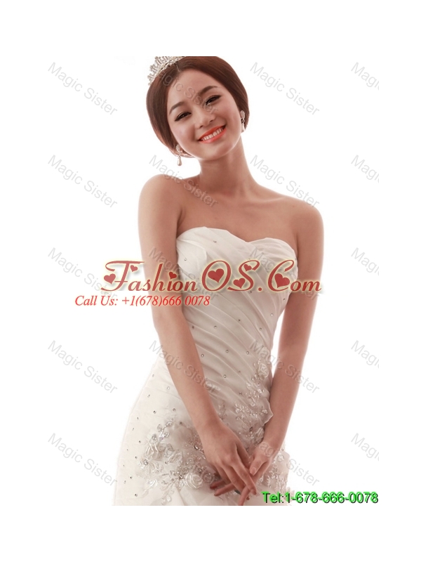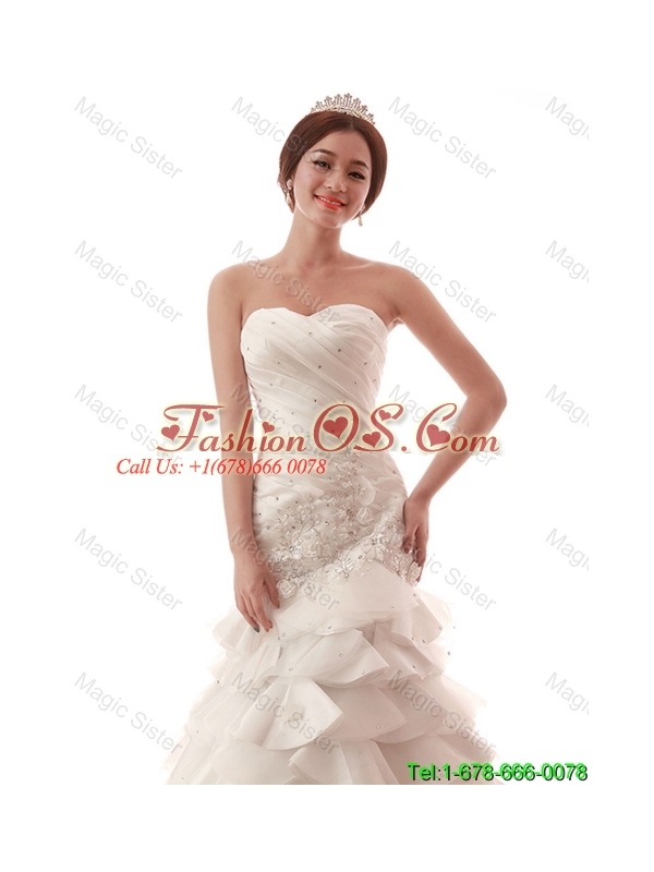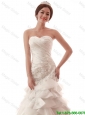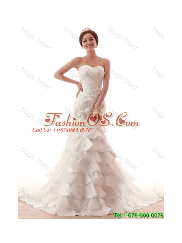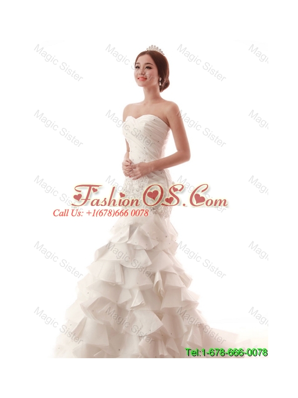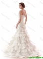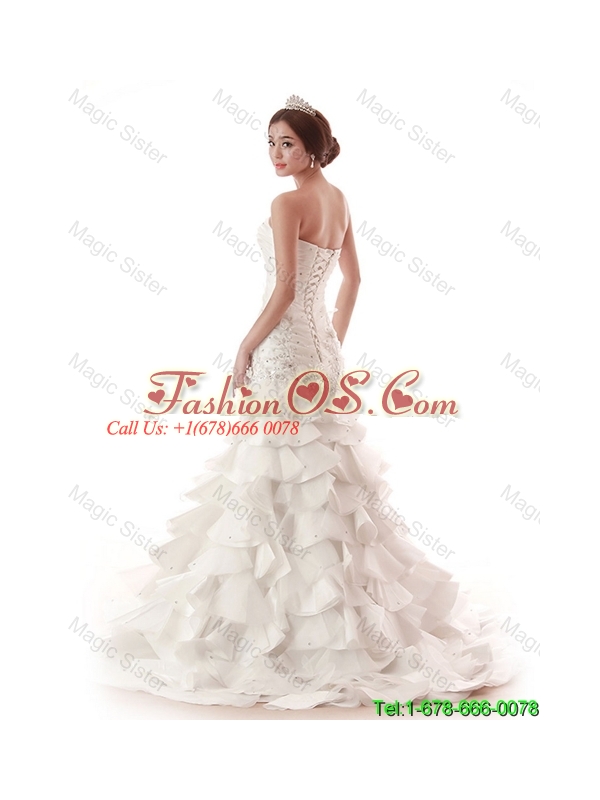 Gorgeous Beading and Ruffles White Wedding Dress with Brush Train