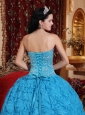 Home >  Quinceanera Dresses >  Unique Quinceanera Dresses > Gorgeous Blue Quinceanera Dress Ball Gown Strapless Fabric With Rolling Flowers Beading Ball Gown
