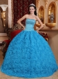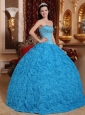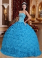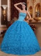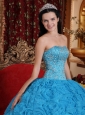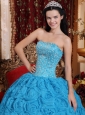 Gorgeous Blue Quinceanera Dress Ball Gown Strapless Fabric With Rolling Flowers Beading Ball Gown