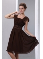 Home >  Special Occasion Dresses >  Mother of the Bride Dresses > Gorgeous Brown A-line Square Beading Mother Of The Bride Dress Knee-length Chiffon